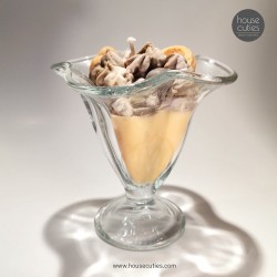 Efektowna świeca sojowa w formie pachnącego deseru w szklanym pucharze to połączenie estetyki, zapachu i nowoczesnego designu. Do złudzenia przypomina apetyczny deser lodowy, dzięki czemu przyciąga wzrok i staje się oryginalną dekoracją wnętrza. Wykonana z naturalnego wosku sojowego, pali się czysto i równomiernie, wypełniając pomieszczenie pięknym, przyjemnym aromatem.