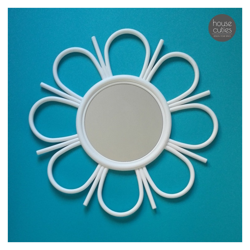Lustro z ramą w kształcie kwiatu. Dostępne w dwóch kolorach: białym i czarnym.